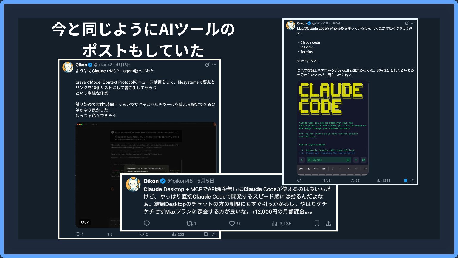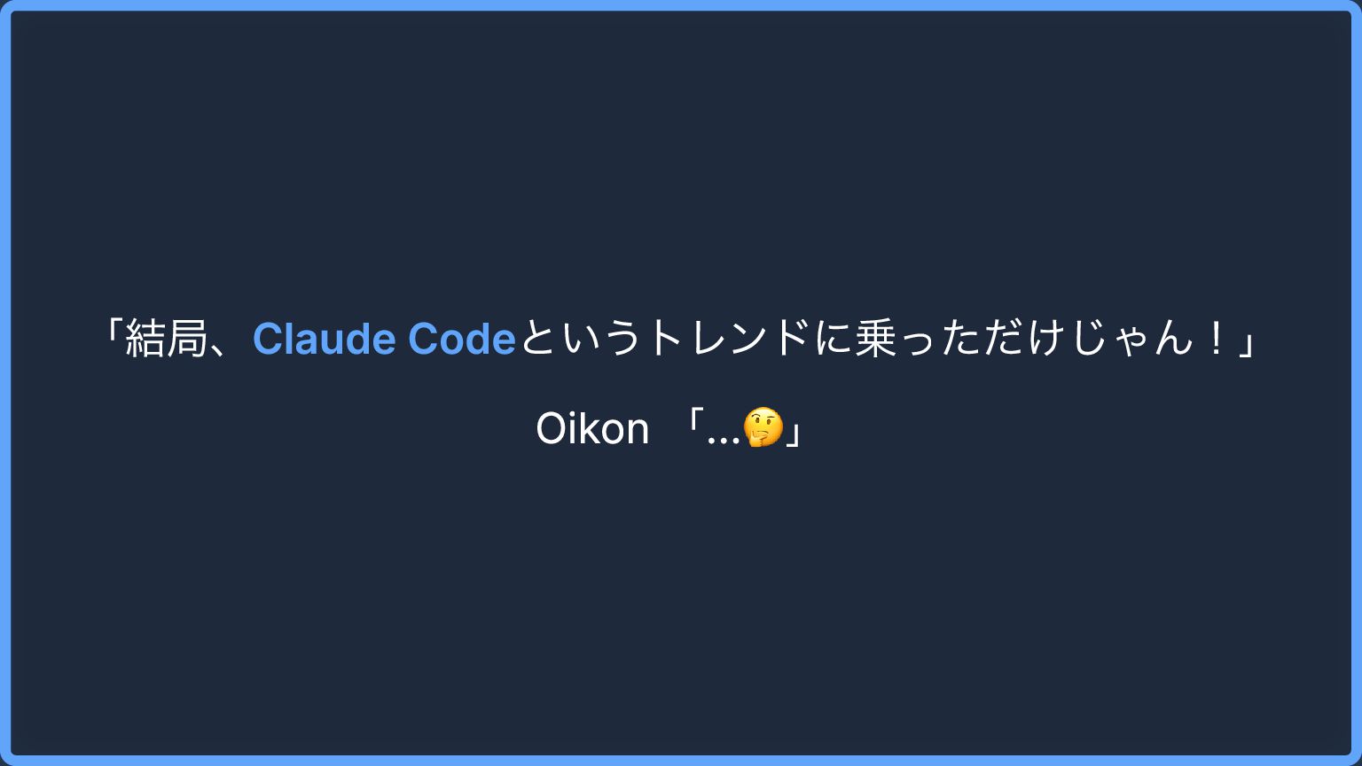 「結局、Claude Codeというトレンドに乗っただけじゃん!」 Oikon 「…🤔」