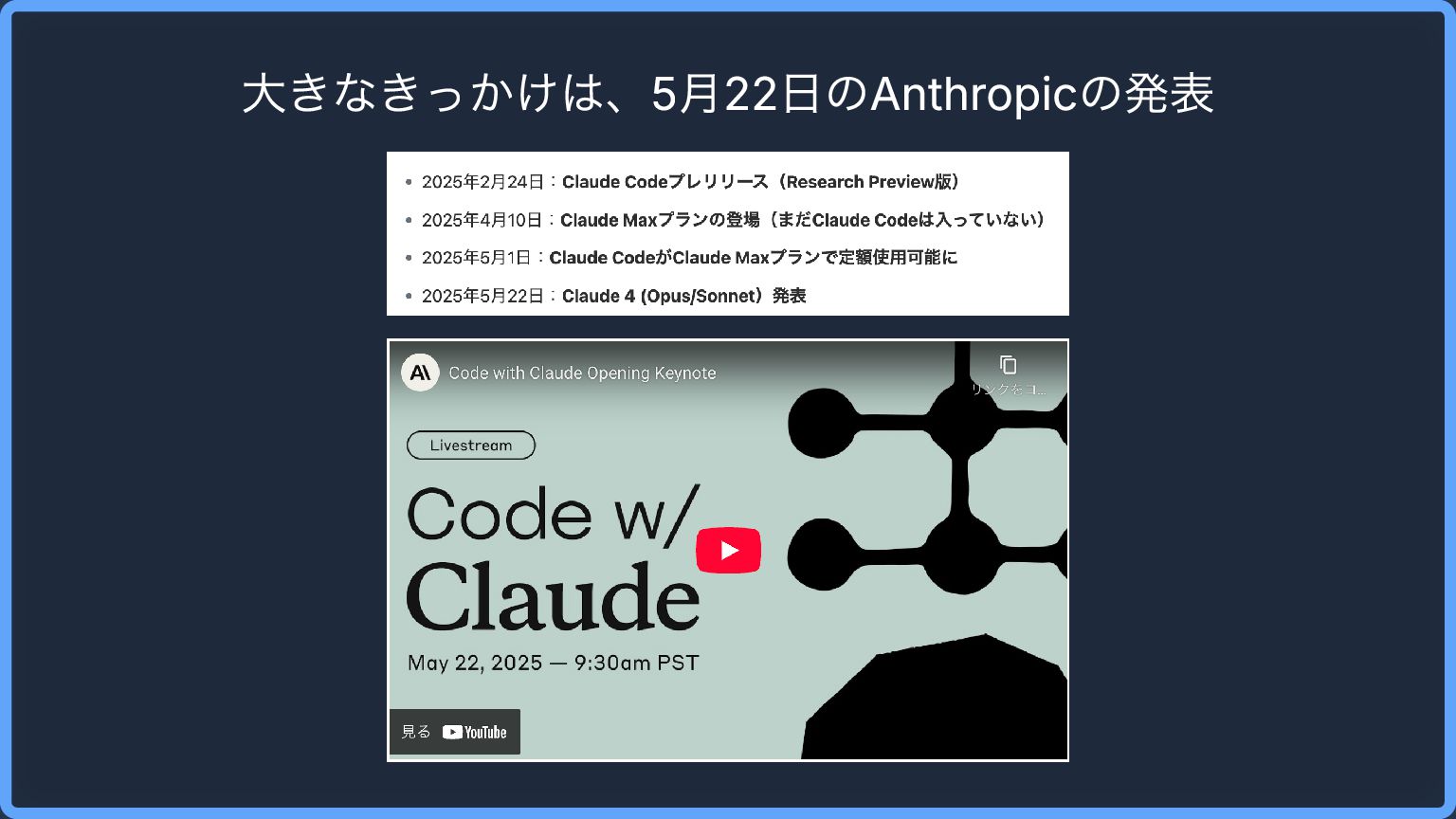 大きなきっかけは、5月22日のAnthropicの発表