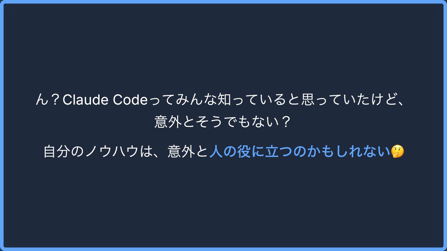 ん?Claude Codeってみんな知っていると思っていたけど、 意外とそうでもない? 自分のノウハウは、意外と人の役に立つのかもしれない🤔