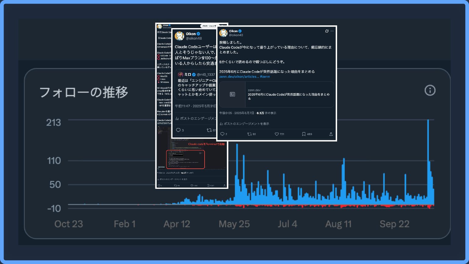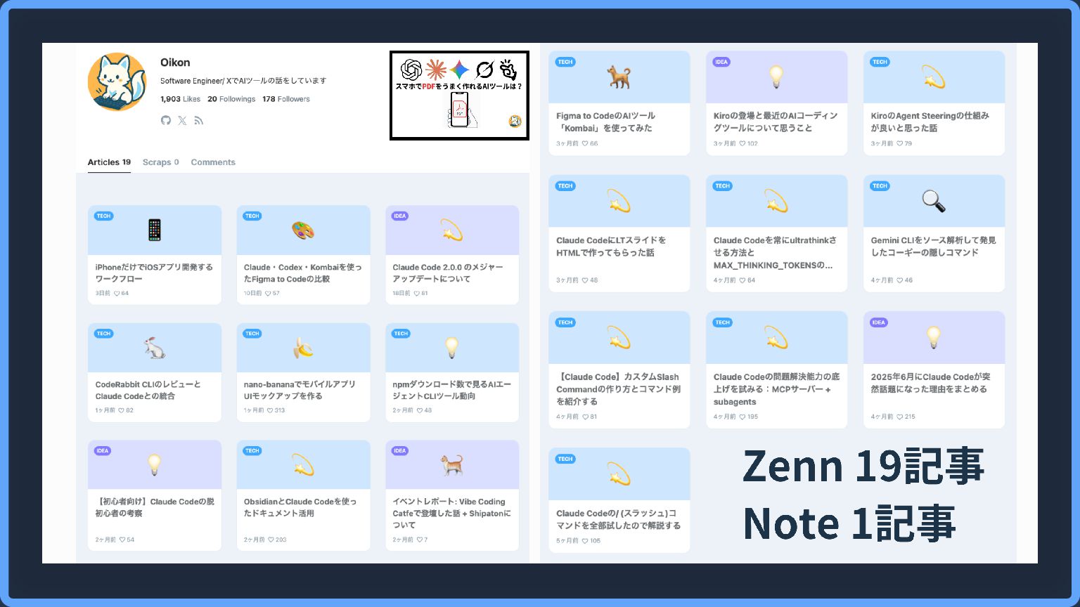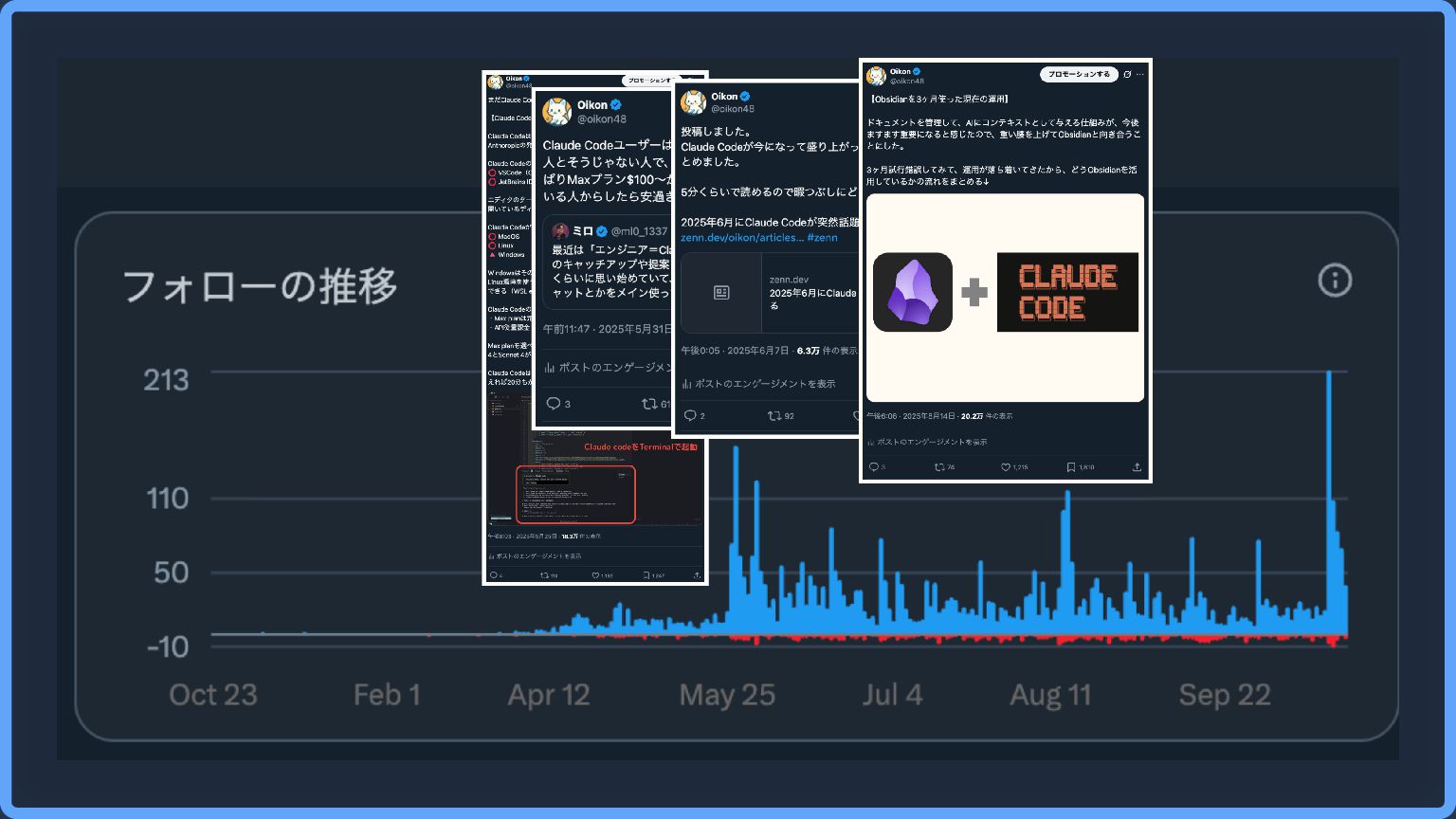 そもそもOikonはなぜ発信活動をしているか? きっかけは2024年初頭くらいから感じたAIの影響力と不安感 ずっと今の仕事をすると思っていない(レイオフありえる😂) 興味関心をベースに技術の幅を広げたかった コネクションを広げたい(エンジニアや外資の人) 2025年4月1日から、Xを中心に発信を始めた