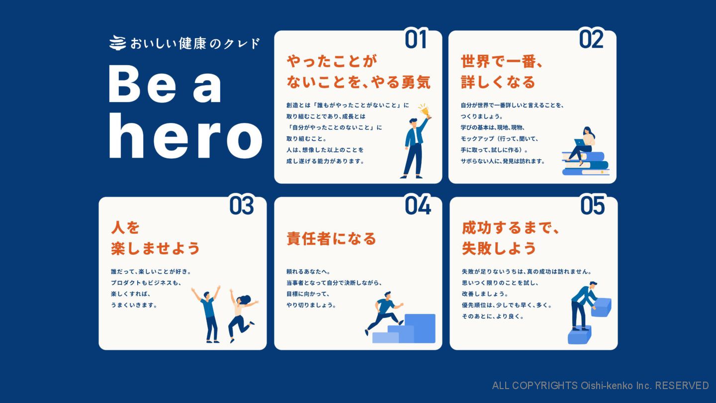 ALL COPYRIGHTS Oishi-kenko Inc. RESERVED クレド (⾏動指針)