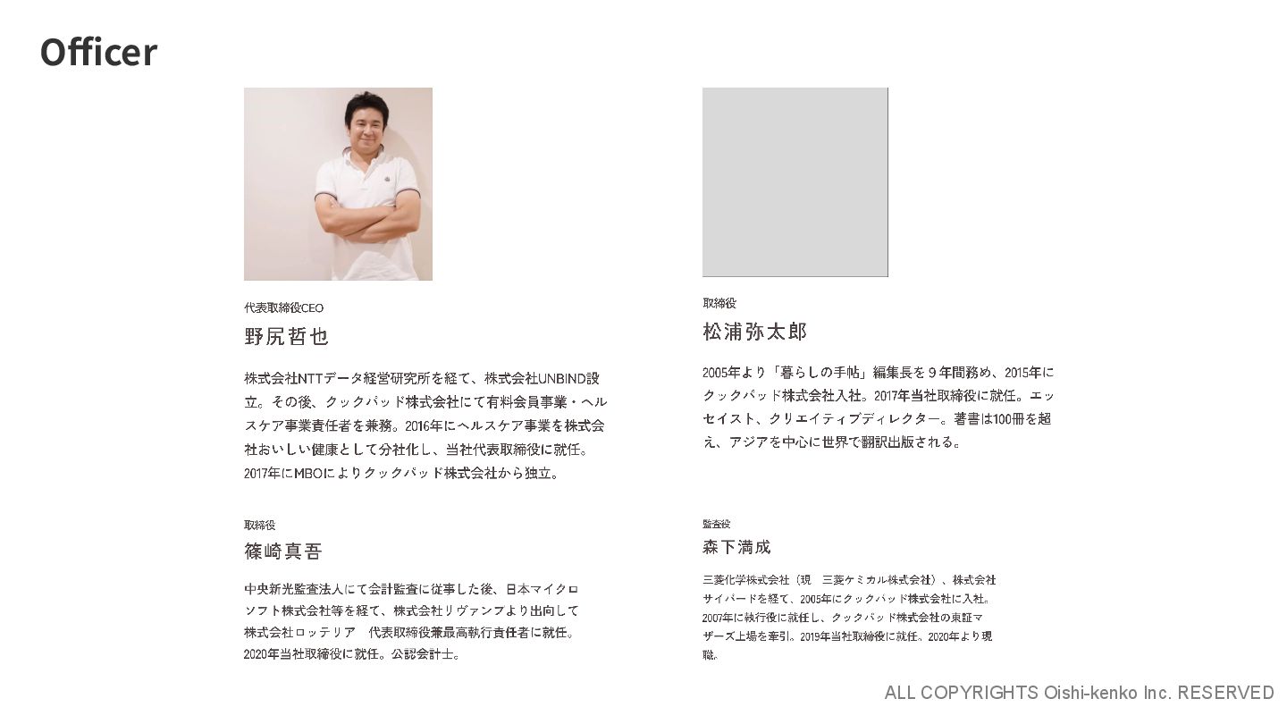 ALL COPYRIGHTS Oishi-kenko Inc. RESERVED Officer