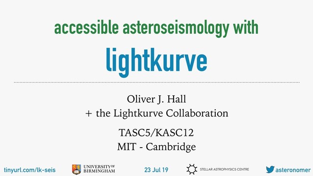 The majority of the talk was a demonstration using these tools on a Kepler Main-Sequence target in a Jupyter Notebook. An annotated version of this notebook can be found here: https://github.com/ojhall94/TASC5_lightkurve/blob/master/Notebooks/Colab-Rudy-example.ipynb, with a link to a Google Colab version.