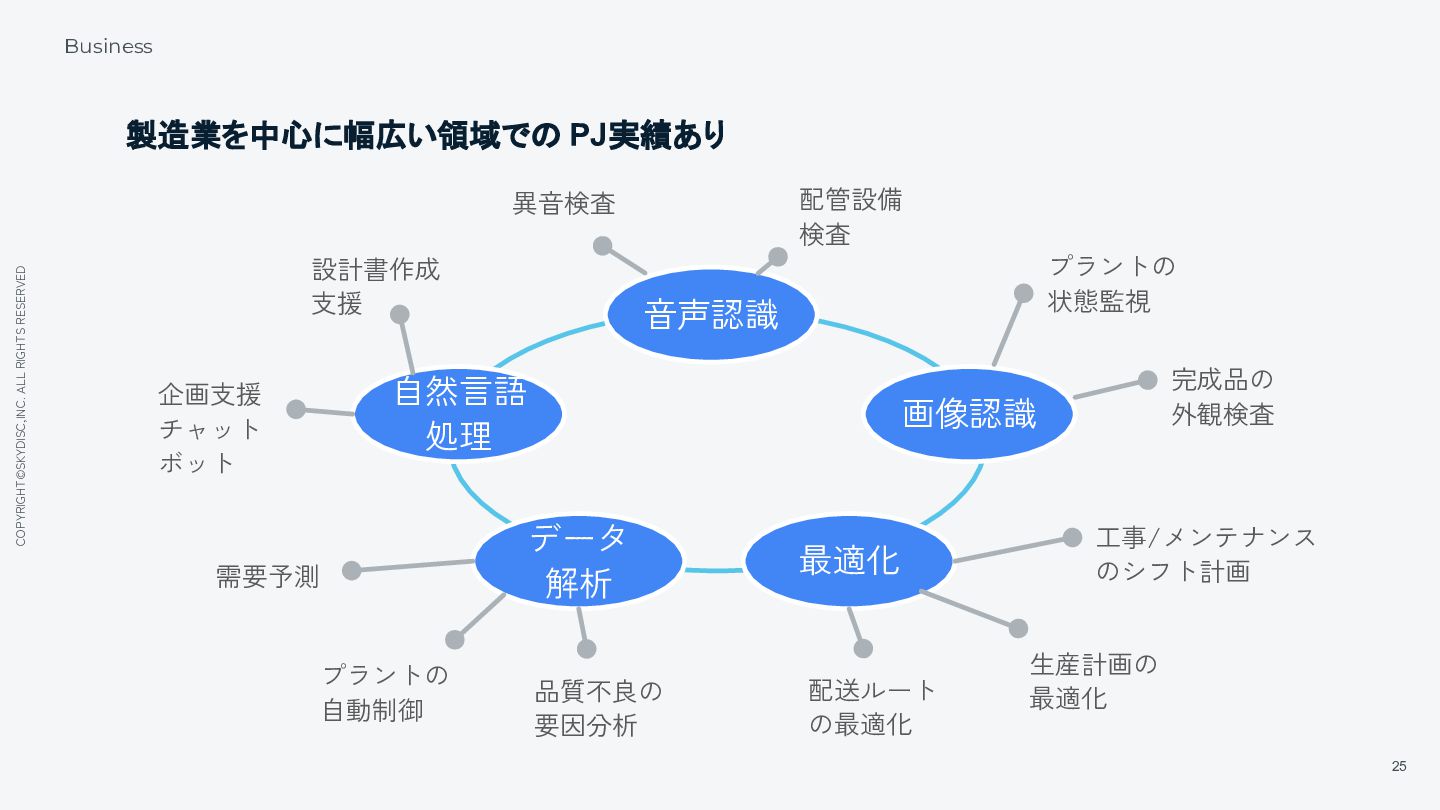 16. COPYRIGHT©SKYDISC,INC. ALL RIGHTS RESERVED 25 Business 製造業を中心に幅広い領域での PJ実績あり 自然言語 処理