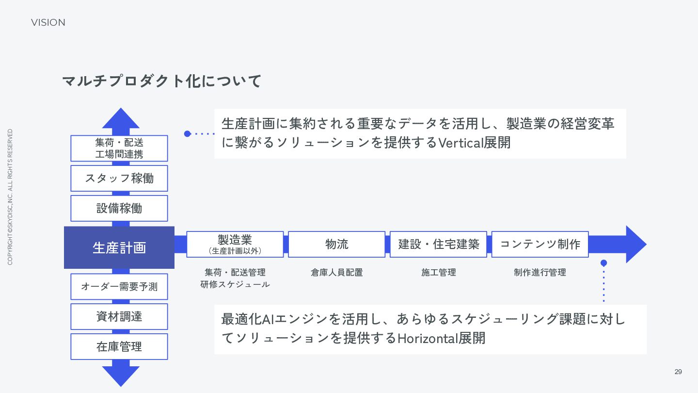 19. COPYRIGHT©SKYDISC,INC. ALL RIGHTS RESERVED 29 VISION マルチプロダクト化について 生産計画 設備稼働 スタッフ稼働