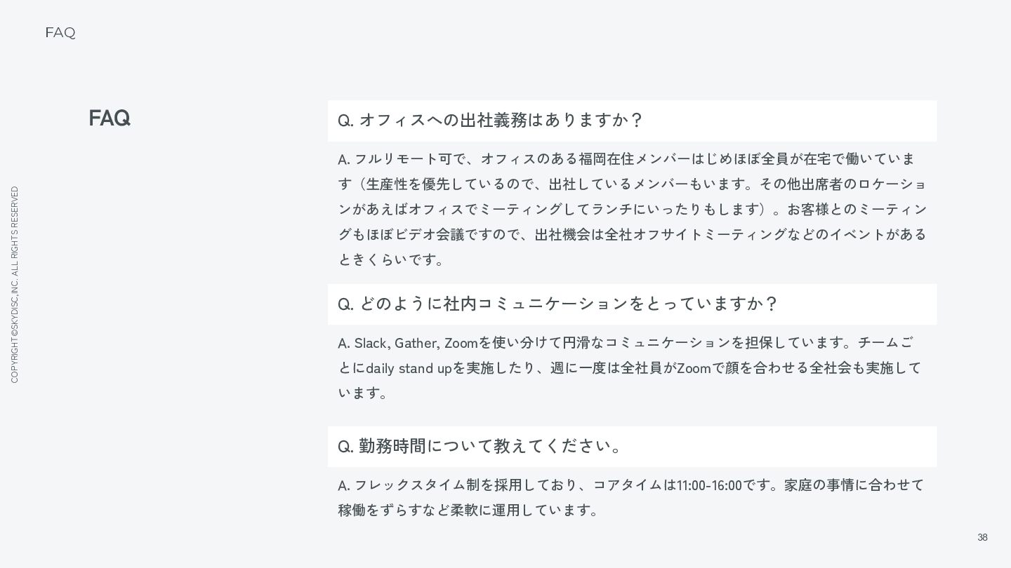 25. COPYRIGHT©SKYDISC,INC. ALL RIGHTS RESERVED 38 FAQ FAQ Q. オフィスへの出社義務はありますか? A.
