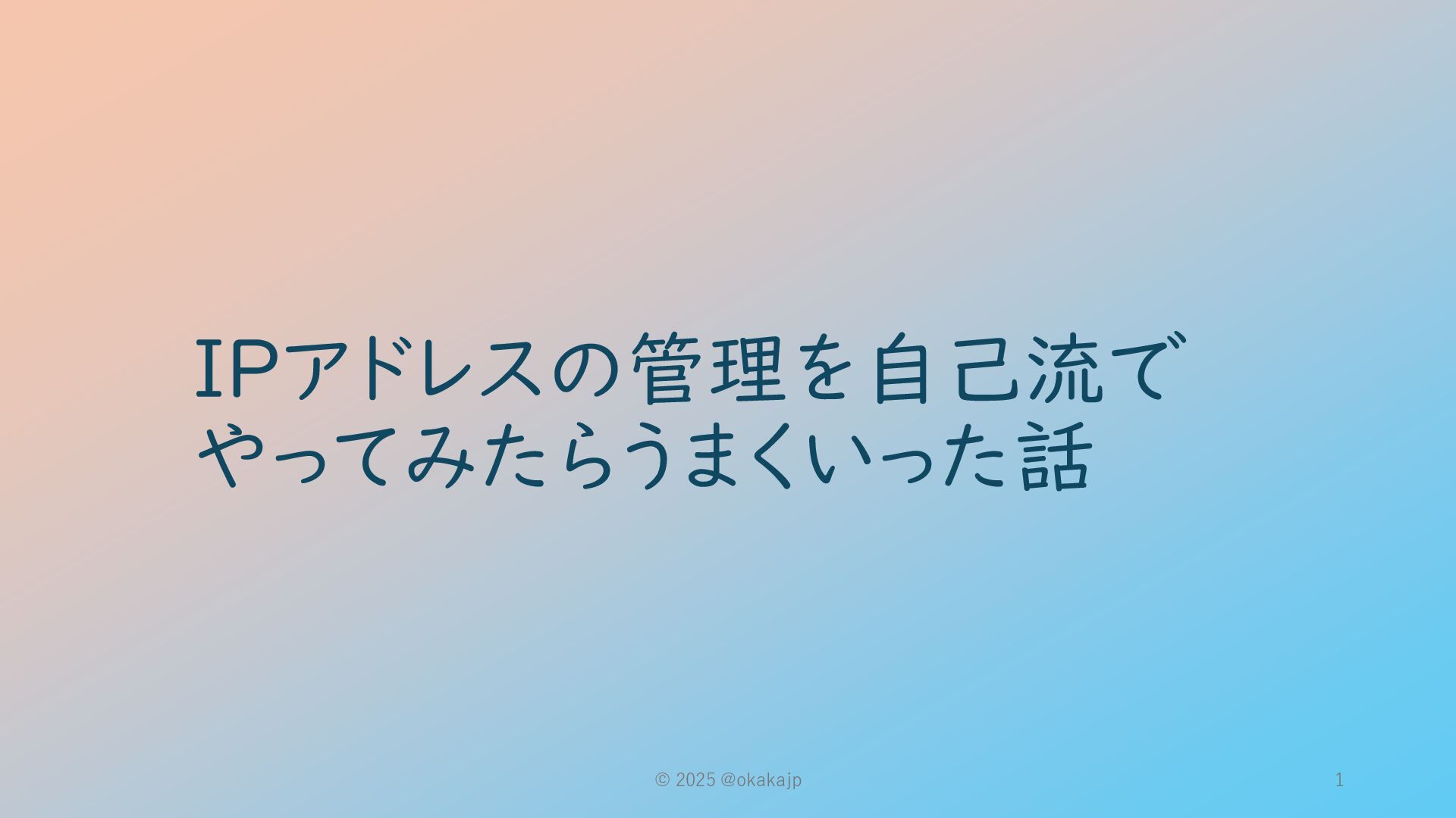 IPアドレスの管理を自己流で やってみたらうまくいった話 1 © 2025 @okakajp