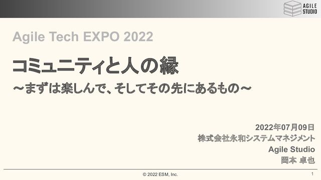 © 2022 ESM, Inc. Agile Tech EXPO 2022 コミュニティと人の縁 ~まずは楽しんで、そしてその先にあるもの~