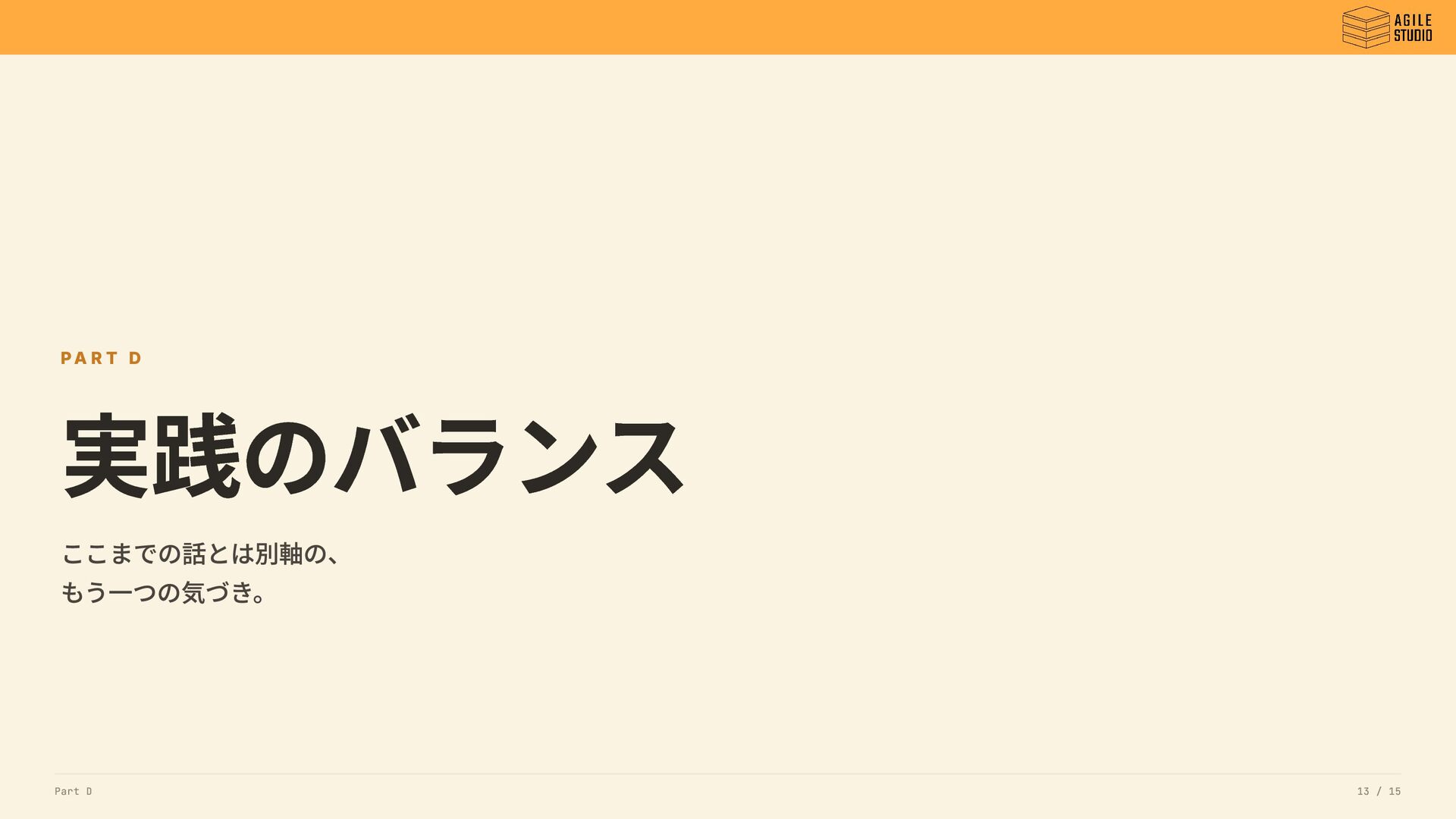 PA R T D 実践のバランス ここまでの話とは別軸の、 もう一つの気づき。 Part D 13