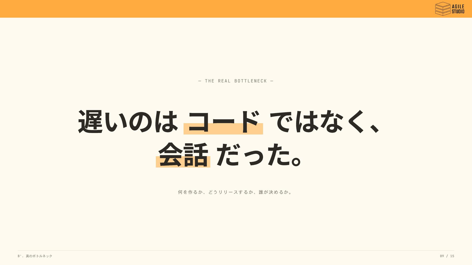 何を作るか、どうリリースするか、誰が決めるか。 B'. 真のボトルネック 09 / 15