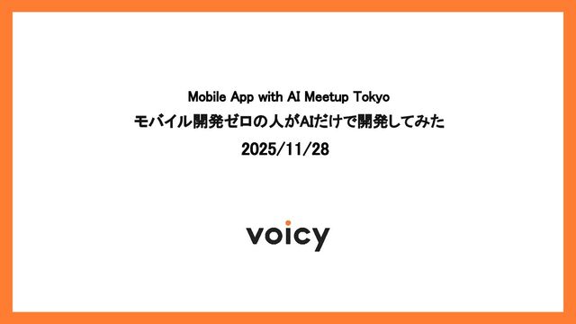 Mobile App with AI Meetup Tokyo モバイル開発ゼロの人がAIだけで開発してみた 2025/11/28