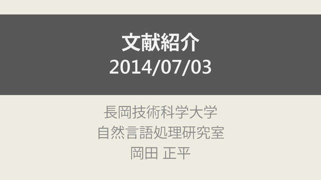 文献紹介 2014/07/03 長岡技術科学大学 自然言語処理研究室 岡田 正平
