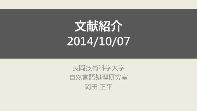 Christopher D. Manning, Andrew Y. Ng and Christopher Potts Recursive Deep Models for Semantic Compositionality Over a Sentiment Treebank In Proceedings of the 2013 Conference on Empirical Methods in Natural Language Processing, pp 1631-1642. 2013. 2014/10/7 文献紹介 2