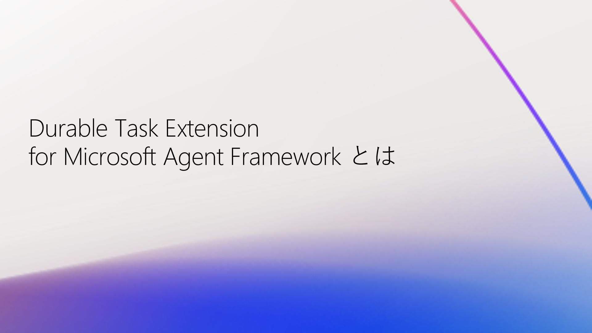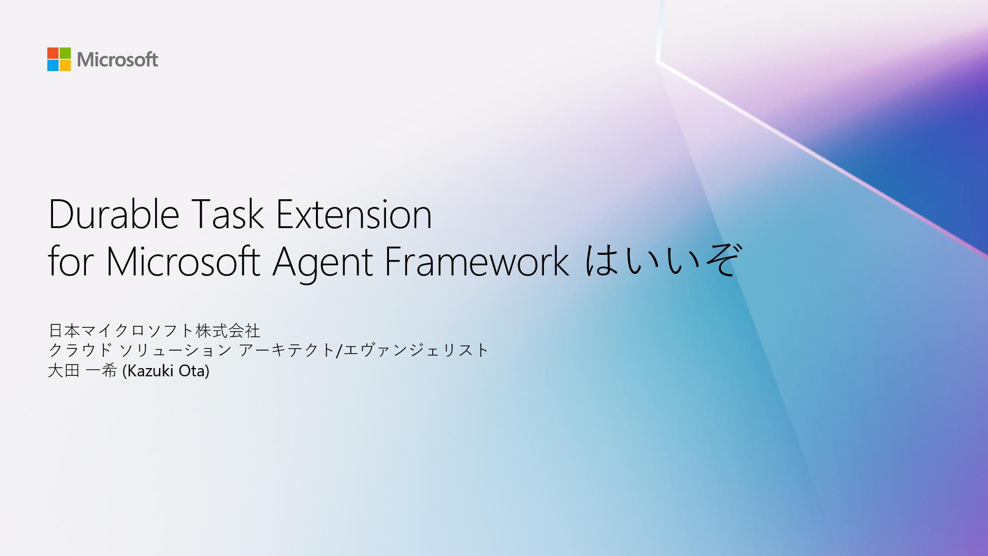 Durable Task Extension for Microsoft Agent Framework はいいぞ 日本マイクロソフト株式会社 クラウド