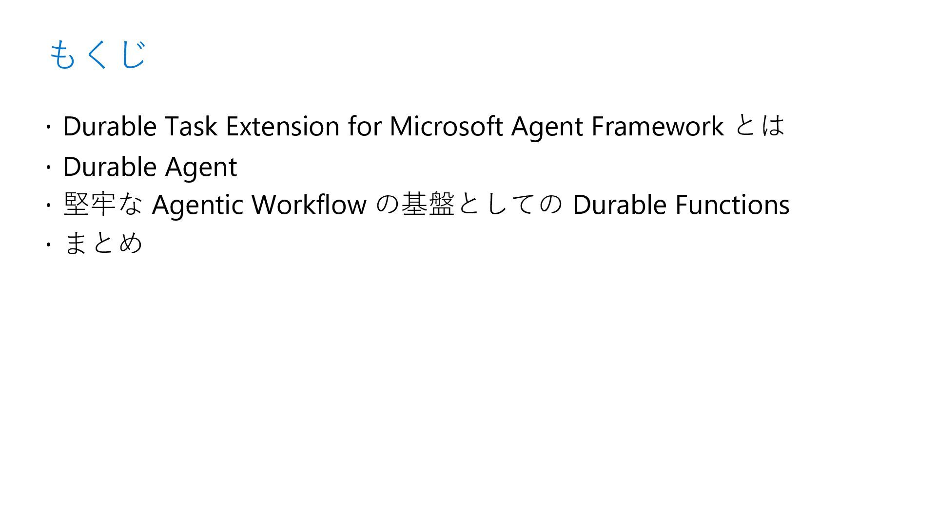 もくじ Durable Task Extension for Microsoft Agent Framework とは