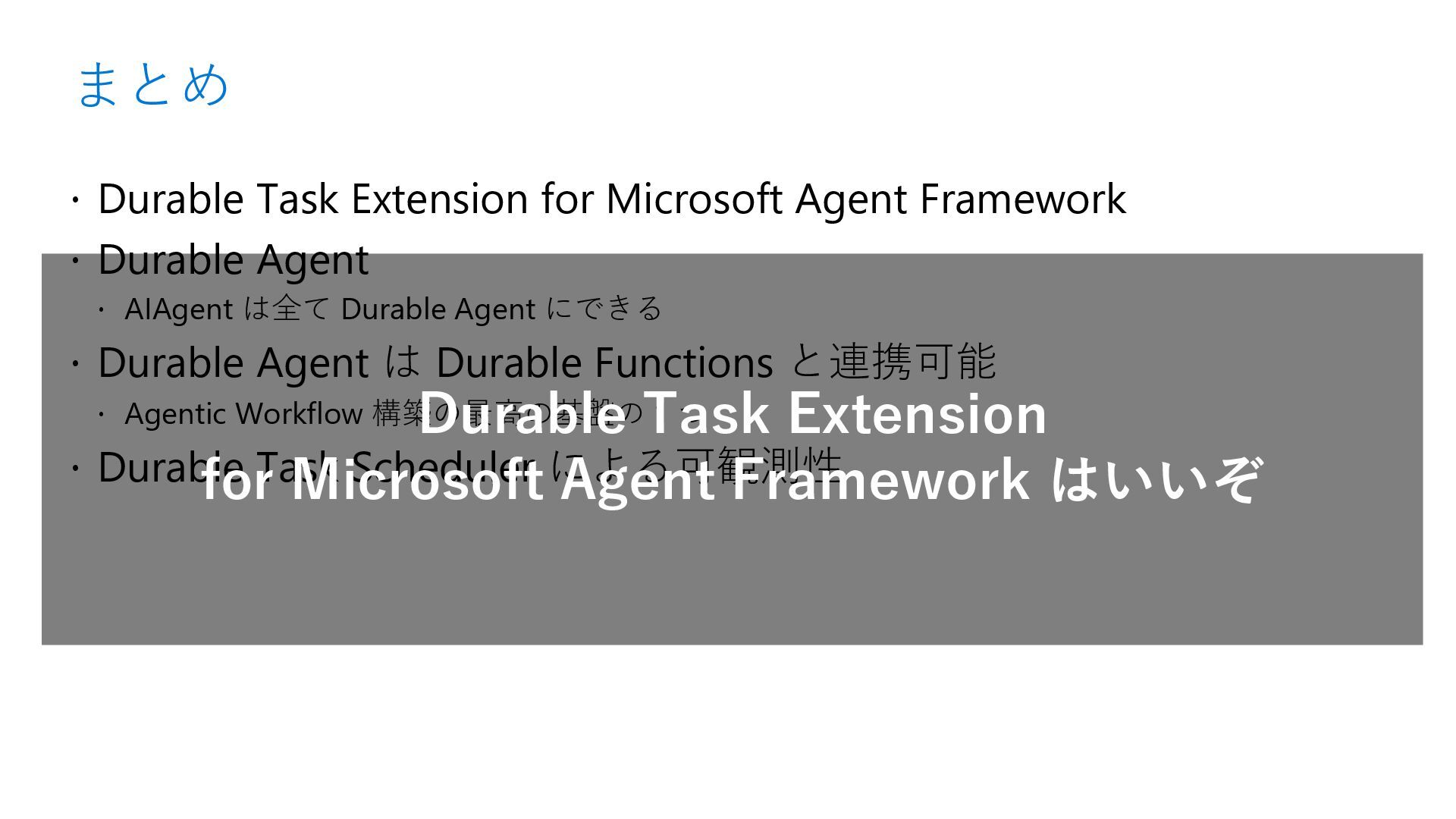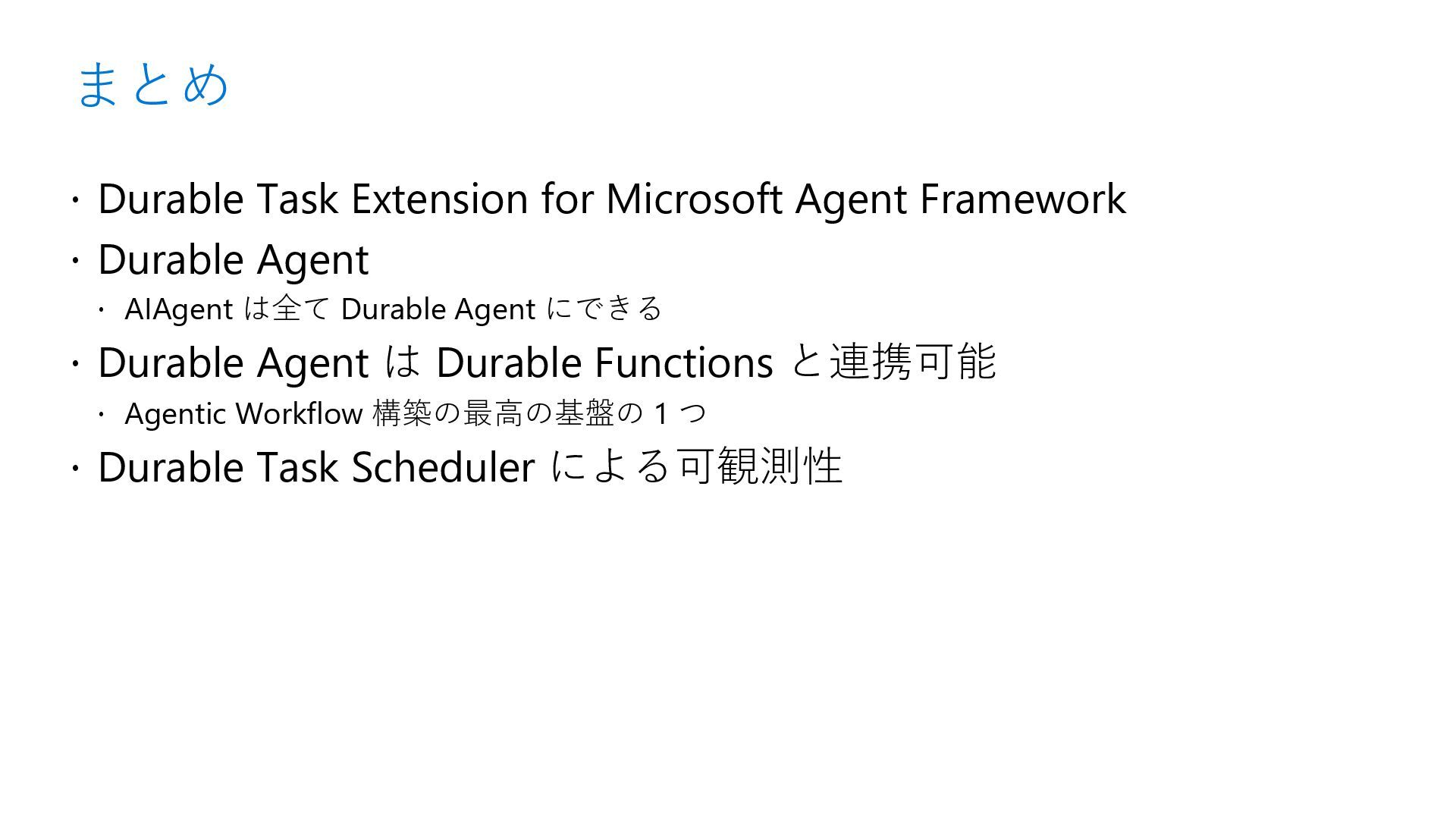 まとめ Durable Task Extension for Microsoft Agent Framework