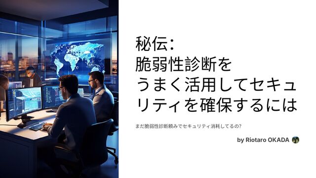 秘伝: 脆弱性診断を うまく活⽤してセキュ リティを確保するには まだ脆弱性診断頼みでセキュリティ消耗してるの? by Riotaro OKADA