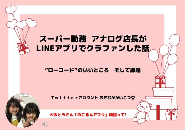 スーパー勤務 アナログ店長が LINEアプリでクラファンした話 Twitterアカウント おきなかがいこつ💀 ”ローコード”のいいところ そして課題 📣おとうさん「のこるんアプリ」頑張って!