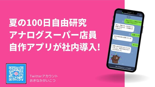 夏の100日自由研究 アナログスーパー店員 自作アプリが社内導入! Twitterアカウント おきなかがいこつ
