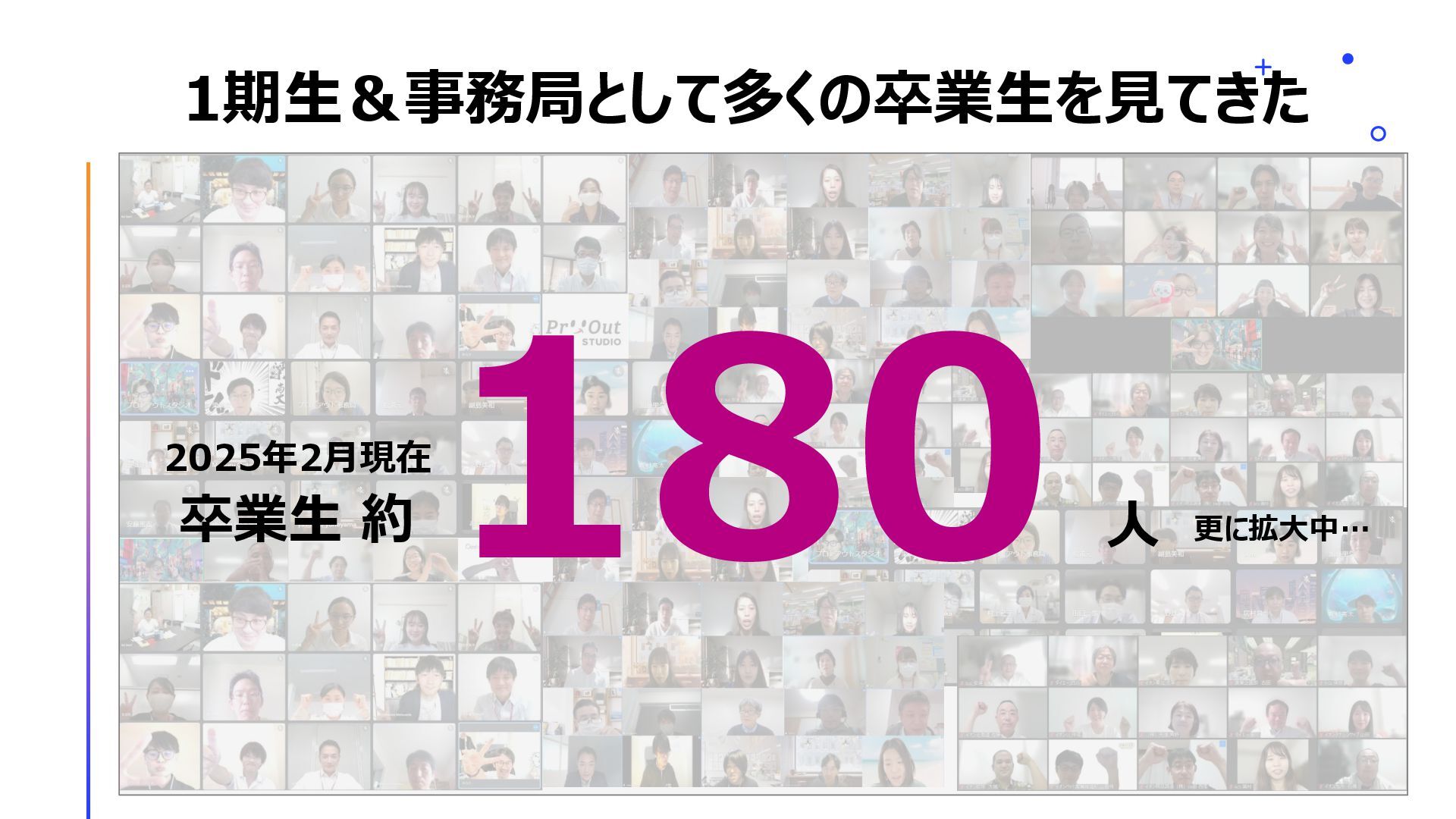 1期生&事務局として多くの卒業生を見てきた 2025年2月現在 卒業生 約 人 180 更に拡大中…