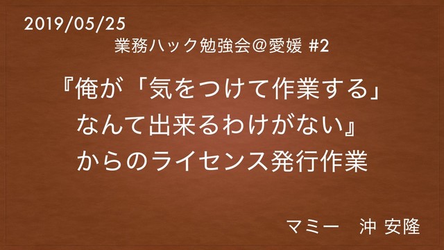 ʰԶ͕ʮؾΛ͚ͭͯ࡞ۀ͢Δʯ ͳΜͯग़དྷΔΘ͚͕ͳ͍ʱ ͔ΒͷϥΠηϯεൃߦ࡞ۀ 2019/05/25 ۀϋοΫษڧձˏѪඤ #2 Ϛϛʔɹԭ ོ҆