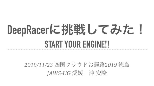 DeepRacerʹઓͯ͠Έͨʂ START YOUR ENGINE!! 2019/11/23 ࢛ࠃΫϥυ͓ว࿏2019 ಙౡ JAWS-UG Ѫඤɹԭ ོ҆