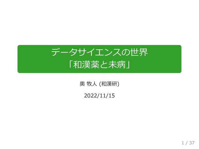 データサイエンスの世界 「和漢薬と未病」 奥 牧人 (和漢研) 2022/11/15 1 / 37