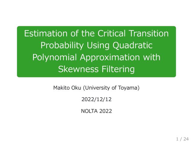 Estimation of the Critical Transition Probability Using Quadratic Polynomial Approximation with Skewness Filtering
