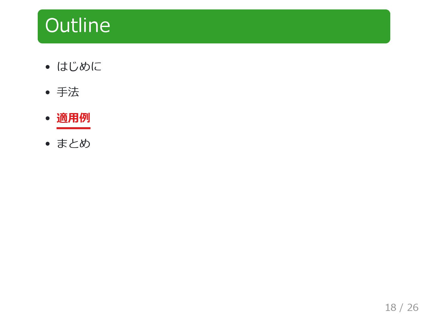 Outline はじめに 手法 適用例 まとめ 18 / 26