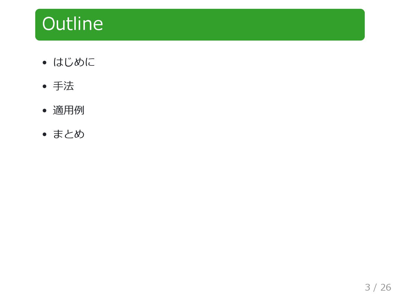 Outline はじめに 手法 適用例 まとめ 3 / 26