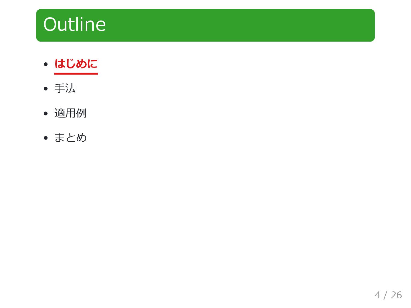 Outline はじめに 手法 適用例 まとめ 4 / 26
