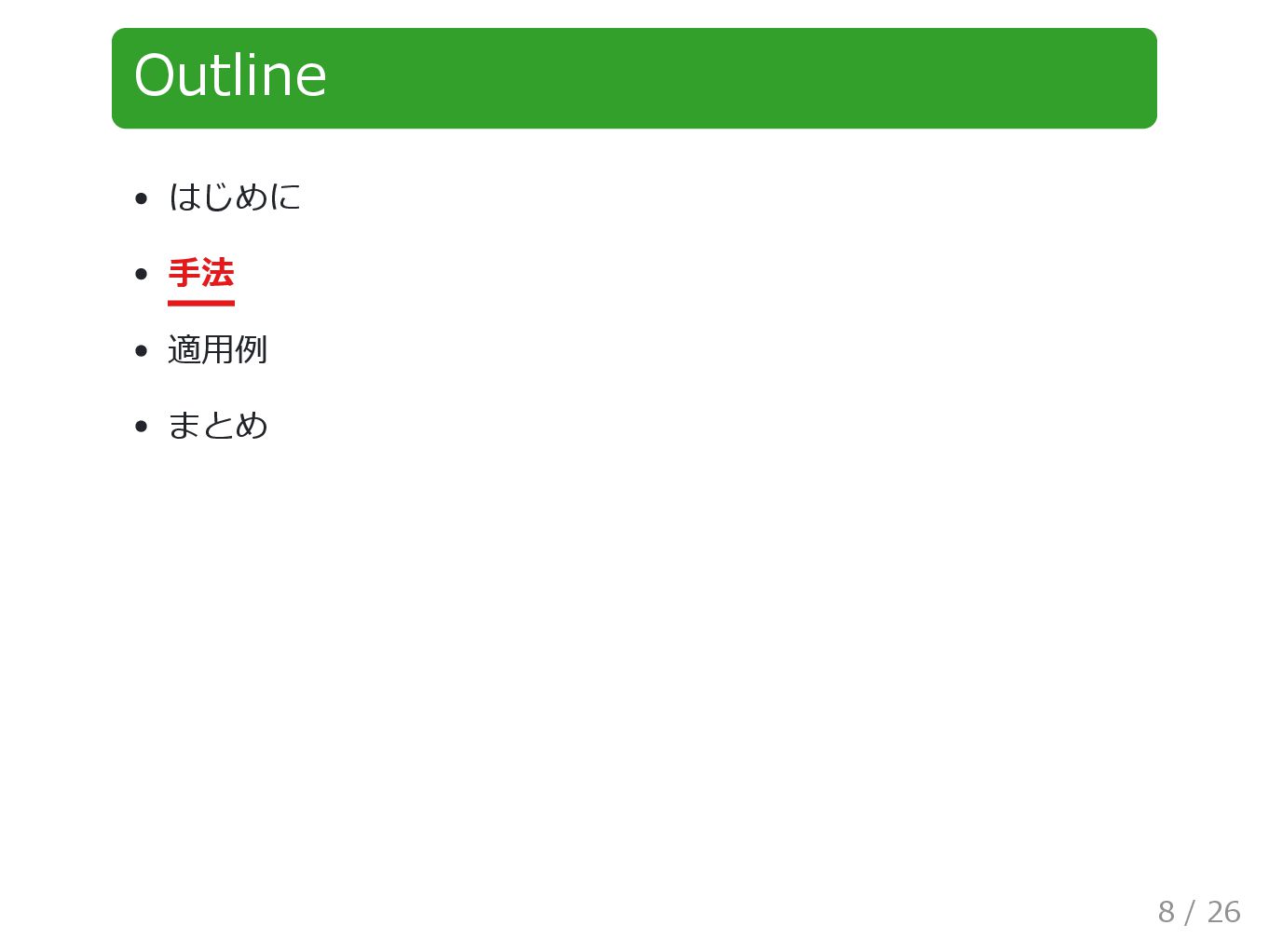 Outline はじめに 手法 適用例 まとめ 8 / 26