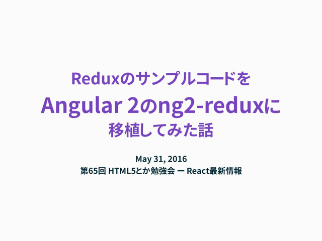 第65回 HTML5とか勉強会 React最新情報でLT発表した資料です。 https://github.com/armorik83/comparing-ng2-redux-and-walts/tree/master/examples/ng2-redux
