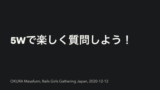5WͰָ࣭͘͠͠Α͏ʂ OKURA Masafumi, Rails Girls Gathering Japan, 2020-12-12