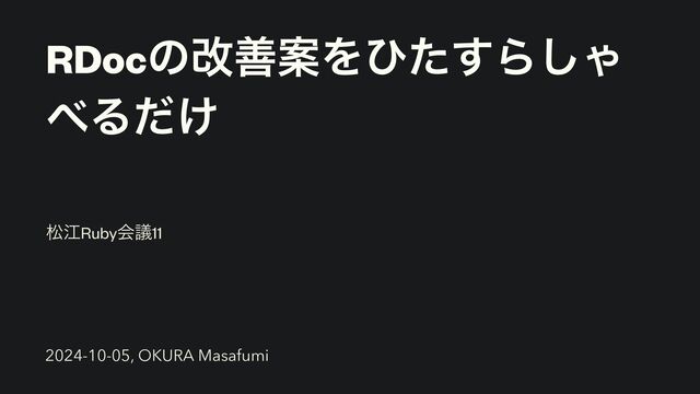 RDocͷվળҊΛͻͨ͢Β͠Ό Δ͚ͩ দߐRubyձٞ11 2024-10-05, OKURA Masafumi