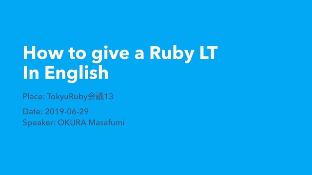 How to give a Ruby LT In English Place: TokyuRubyձٞ13