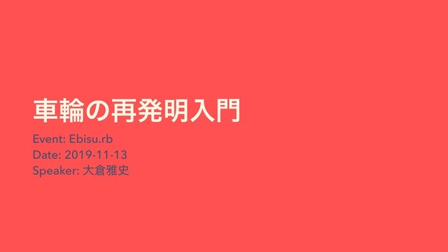 ंྠͷ࠶ൃ໌ೖ Event: Ebisu.rb Date: 2019-11-13 Speaker: େխ࢙