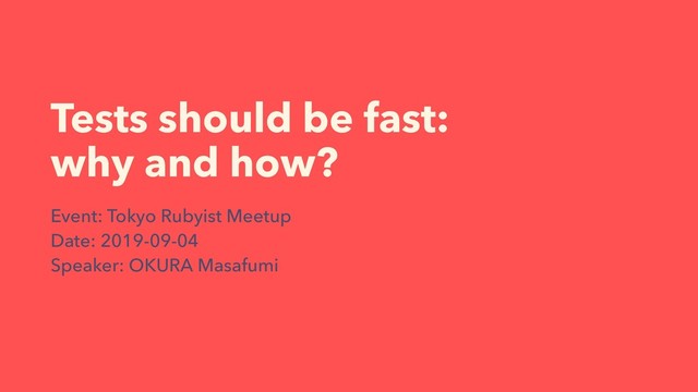 “profile” option and “test-prof” gem. 2. Make slow tests faster taking care of setup (before hook) and database interactions (typically “let” in RSpec). 3. Removing things your tests don’t need (optimizations and compilations).