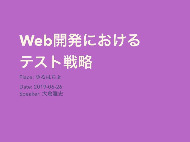 Web։ൃʹ͓͚Δ ςετઓུ Place: ΏΔͪ.it Date: 2019-06-26 Speaker: େխ࢙