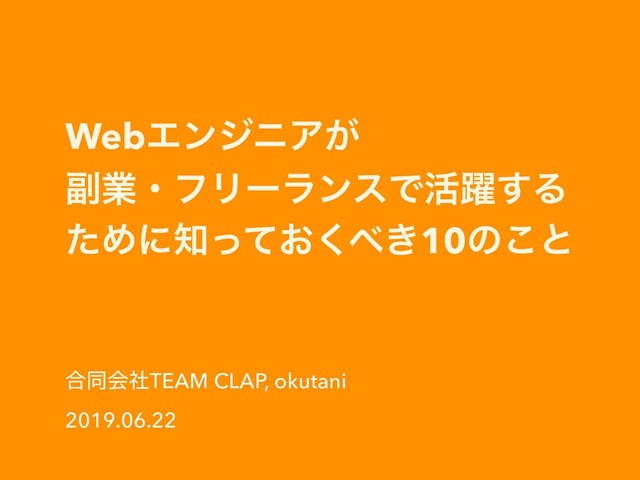 WebΤϯδχΞ͕ ෭ۀɾϑϦʔϥϯεͰ׆༂͢Δ ͨΊʹ͓͖ͬͯ͘10ͷ͜ͱ ߹ಉձࣾTEAM CLAP, okutani 2019.06.22