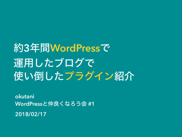 3ؒWordPressͰ ӡ༻ͨ͠ϒϩάͰ ͍ͨ͠ϓϥάΠϯհ okutani WordPressͱྑ͘ͳΖ͏ձ #1 2018/02/17