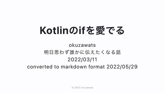 Kotlinのifを愛でる okuzawats 明日思わず誰かに伝えたくなる話 2022/03/11