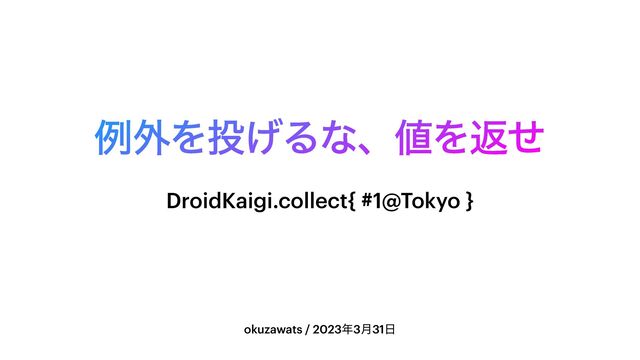 例外を投げるな、値を返せ DroidKaigi.collect{ #1@Tokyo }