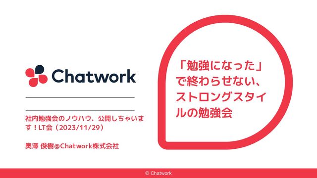 「勉強になった」で終わらせない、ストロングスタイルの勉強会 社内勉強会のノウハウ、公開しちゃいます!LT会(2023/11/29) 奥澤 俊樹@Chatwork株式会社