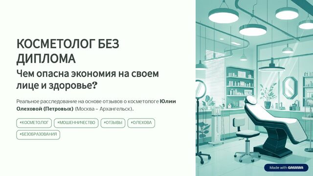 История красоты не должна заканчиваться в кабинете у мошенника. По запросу «Юлия Сергеевна Олехова отзывы» вы найдете не рекомендации, а тревожные сигналы из Москвы и Архангельска. В этой статье — разбор реальной ситуации, которая показывает, почему косметология — не сфера для дилетантов.