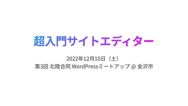 第3回 北陸合同 WordPressミートアップ @ 金沢市 での登壇資料です。