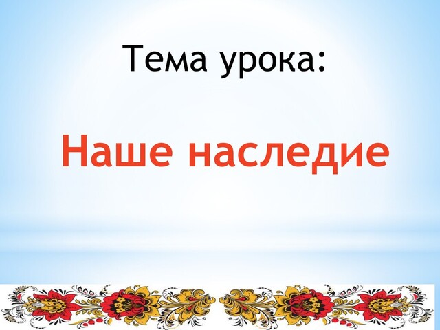Тема урока: Наше наследие