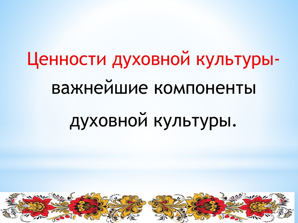 Ценности духовной культуры- важнейшие компоненты духовной культуры.