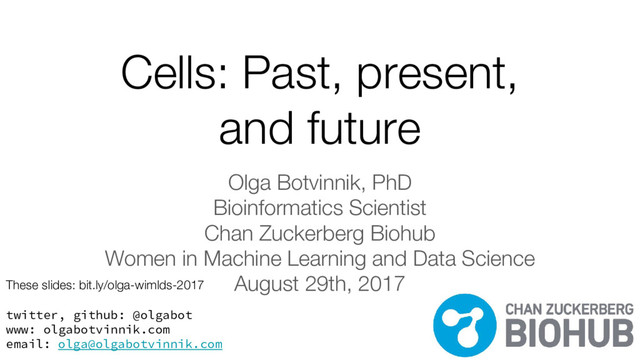 Chan Zuckerberg Biohub Women in Machine Learning and Data Science August 29th, 2017 twitter, github: @olgabot www: olgabotvinnik.com email: [email protected] These slides: bit.ly/olga-wimlds-2017
