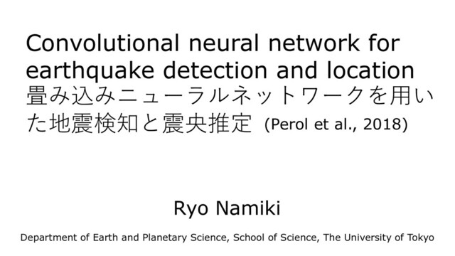 116 2,227 ノイズ窓 FN: 0 TN: 129,954 129,954 2111 130,070 ALL: 132,181 適合率 precision = (TP)/(TP+FP) = 94.8% 再現率 recall = TP/(TP+FN) = 100% Table. 1. 3手法の比較 OGSカタログ ConvNet Quakeの 予測結果 イベント窓 ノイズ窓 イベント窓 TP: 209 FP: 2,018 2,227 ノイズ窓 FN: 0 TN: 129,954 129,954 209 131,972 ALL: 132,181 適合率 precision = (TP)/(TP+FP) = 9.38% 再現率 recall = TP/(TP+FN) = 100% Detection accuracy 適合率:イベント窓と判定した窓が、 本当にイベント窓である割合 再現率:本当のイベント窓を検出できて いる割合 ※ConvNetQuakeがイベントとみなし た窓のうち1,902個はOGSカタログに は乗っていないがAutocorrelationでは イベントとみなせている。 対象 2014年7月の波形